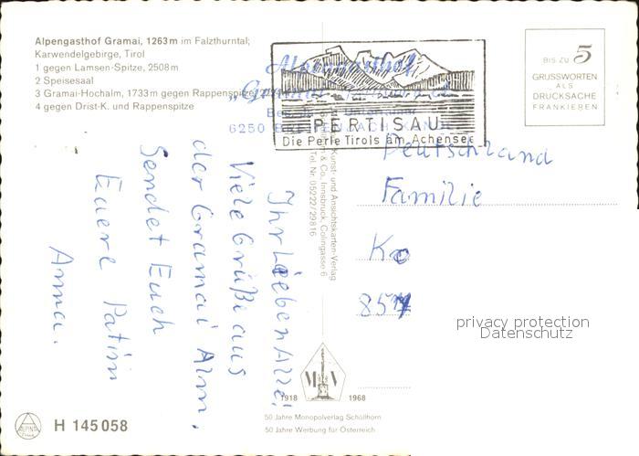 72443902 alte Postkarte Gramaialm Alpengasthof Gramai postalisch gelaufen Erhaltung siehe scans KatCode: 11390335070907