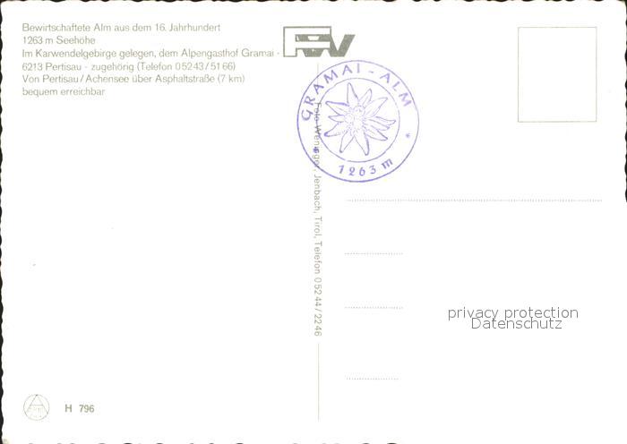 71908860 Gramaialm Alpengasthof Gramai postalisch nicht gelaufen Erhaltung siehe scans KatCode: 11390335070907