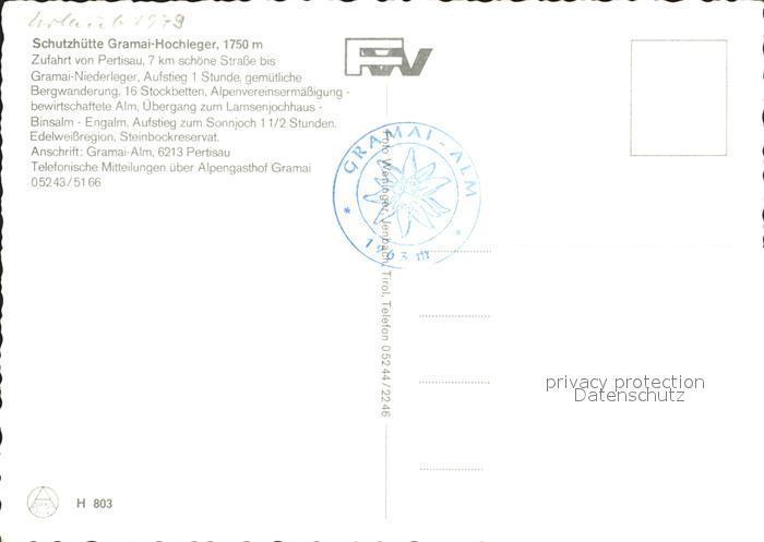 72289403 Gramaialm Schutzhuette Gramai-Hochleger postalisch nicht gelaufen Erhaltung siehe scans KatCode: 11390335070907