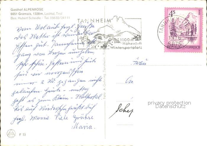 72466457 alte Postkarte Gramais Gasthof Alpenrose postalisch gelaufen Erhaltung siehe scans KatCode: 11390331070812