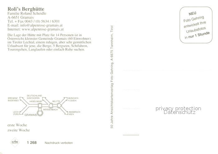 73637325 Gramais Roli’s Berghuette Landschaftspanorama Alpen postalisch nicht gelaufen Erhaltung siehe scans [FriedD77] KatCode: 11390331070812