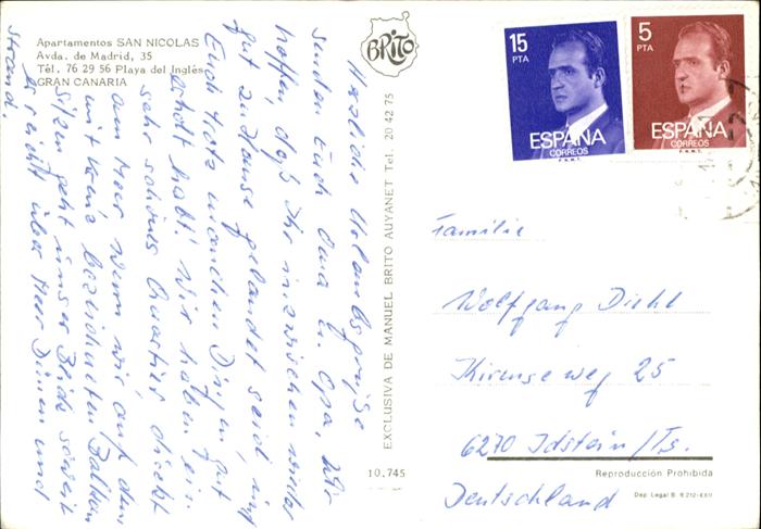 old postcard Gran Canaria Apartamentons San Nicolas postalisch gelaufen