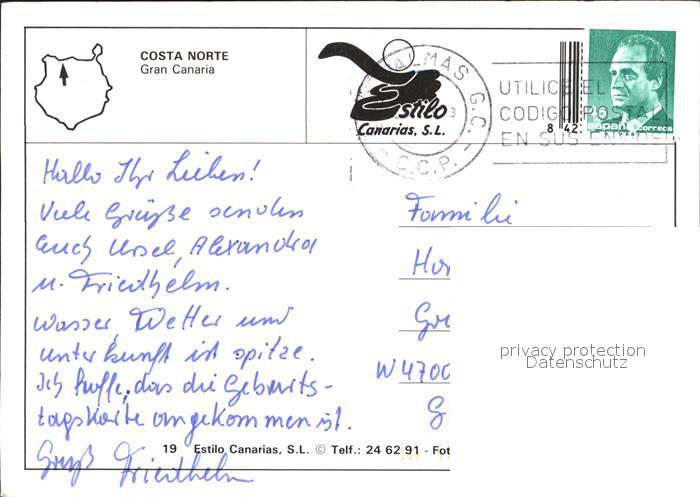 old postcard Gran Canaria Costa Norte postalisch gelaufen Erhaltung siehe scans