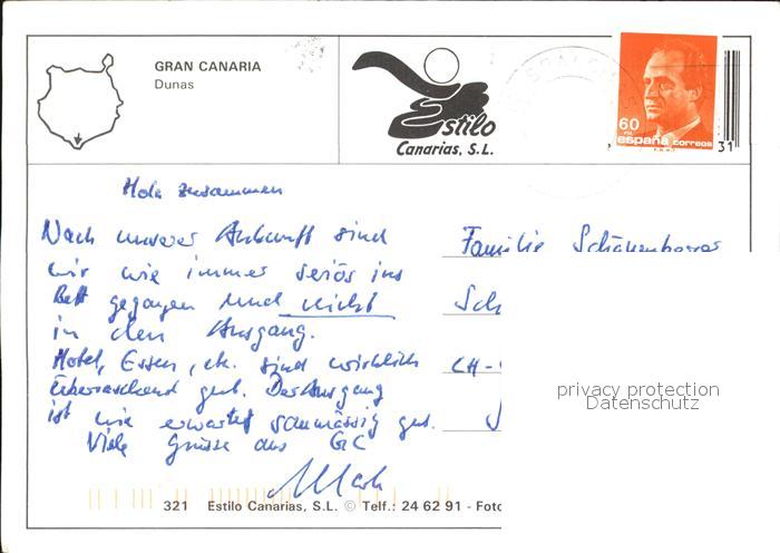 old postcard Gran Canaria Dunas Hotelanlage Swimming Pool Duenen Strand Meerblick postalisch gelaufen Erhaltung siehe scans [FriedD77]