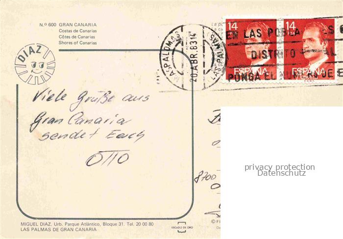 74033790 old postcard Gran Canaria ES Badenixe am Strand postalisch gelaufen Erhaltung siehe scans [FriedD77] KatCode: 11510