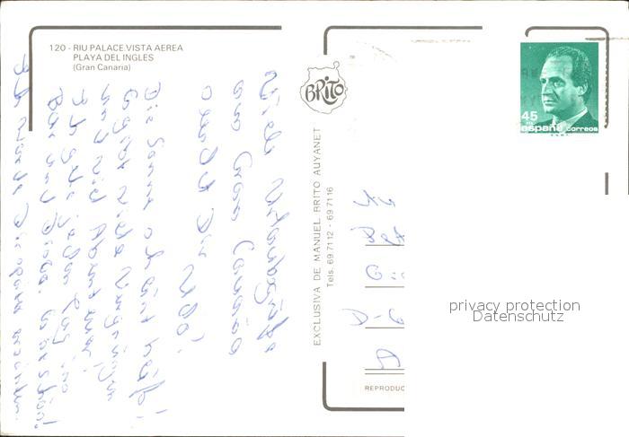 old postcard Gran Canaria Fliegeraufnahme Playa del Ingles postalisch gelaufen Erhaltung siehe scans