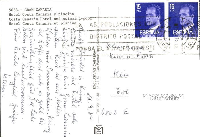 old postcard Gran Canaria Hotel Costa Canaria postalisch gelaufen Erhaltung siehe scans