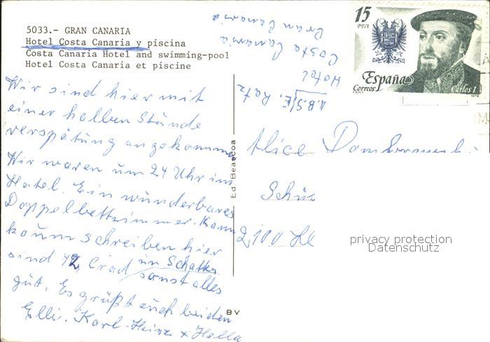 old postcard Gran Canaria Hotel Costa Canaria postalisch gelaufen Erhaltung siehe scans