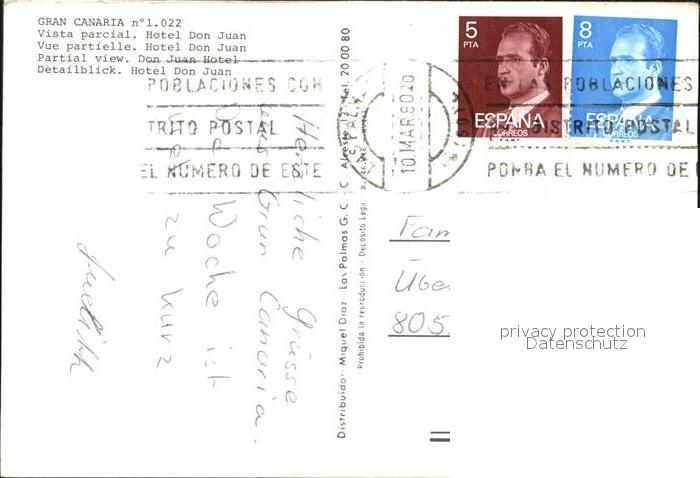 old postcard Gran Canaria Hotel Don Juan postalisch gelaufen Erhaltung siehe scans [AndreD76]