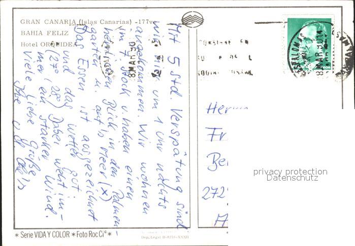 old postcard Gran Canaria Hotel Orquidea postalisch gelaufen Erhaltung siehe scans