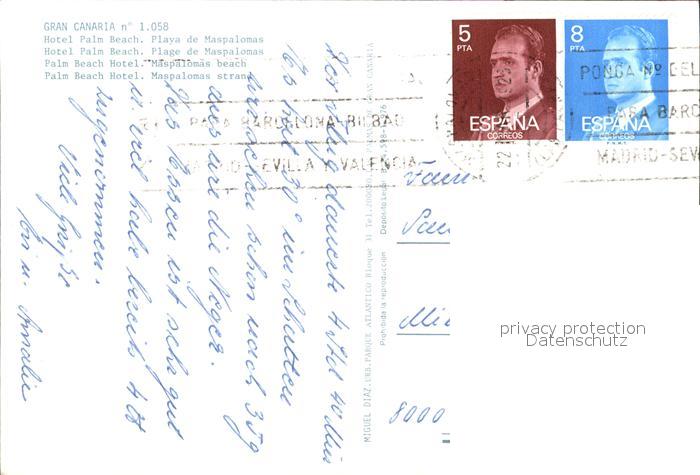 old postcard Gran Canaria Hotel Palm Beach postalisch gelaufen Erhaltung siehe scans