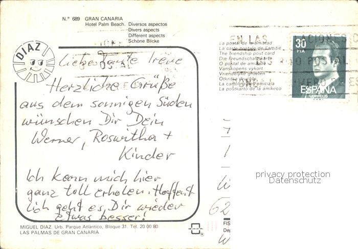 old postcard Gran Canaria Hotel Palm Beach Swimmingpool Tennisplatz postalisch gelaufen Erhaltung siehe scans
