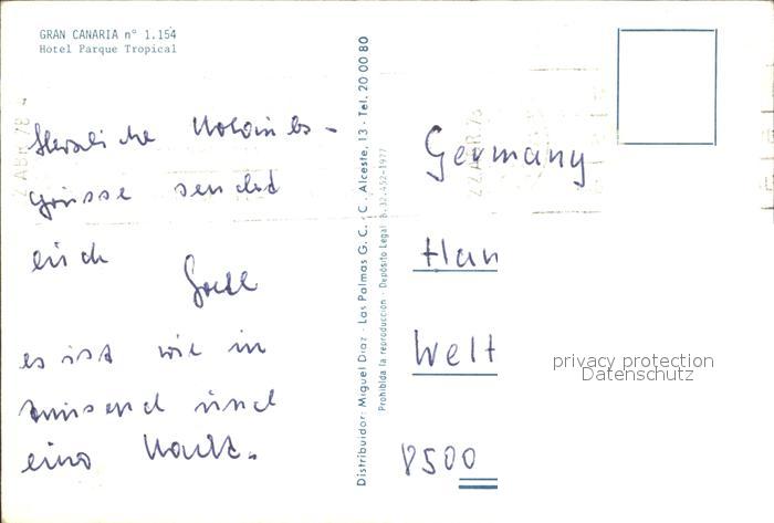 Gran Canaria Hotel Parque Tropical postalisch nicht gelaufen Erhaltung siehe scans