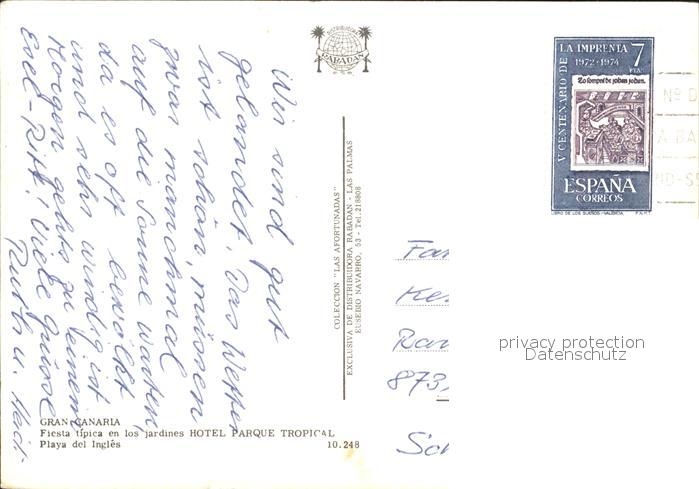 old postcard Gran Canaria Hotel Parque Tropical postalisch gelaufen Erhaltung siehe scans