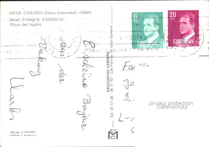 old postcard Gran Canaria Hotel Parque Tropical postalisch gelaufen Erhaltung siehe scans