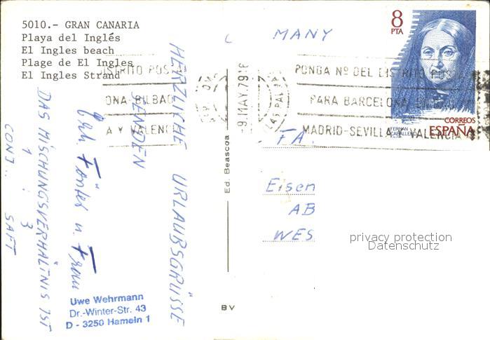 old postcard Gran Canaria Playa del Ingles postalisch gelaufen Erhaltung siehe scans [NatalD47]