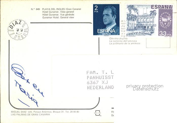 old postcard Gran Canaria Playa del Ingles postalisch gelaufen Erhaltung siehe scans [KathaD79]