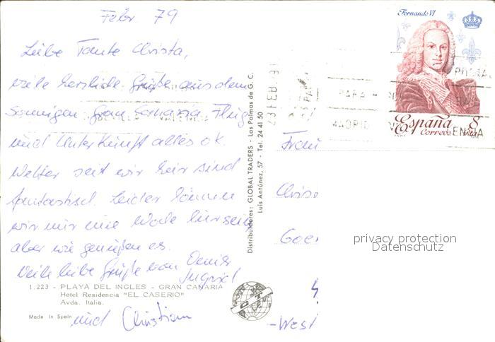 old postcard Gran Canaria Playa del Ingles Hotel Residencia El Caserio postalisch gelaufen Erhaltung siehe scans