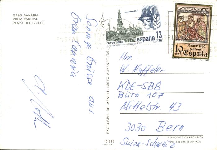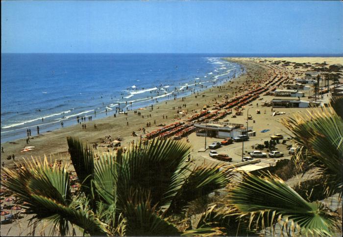old postcard Gran Canaria Playa del Ingles Strand postalisch gelaufen Erhaltung siehe scans