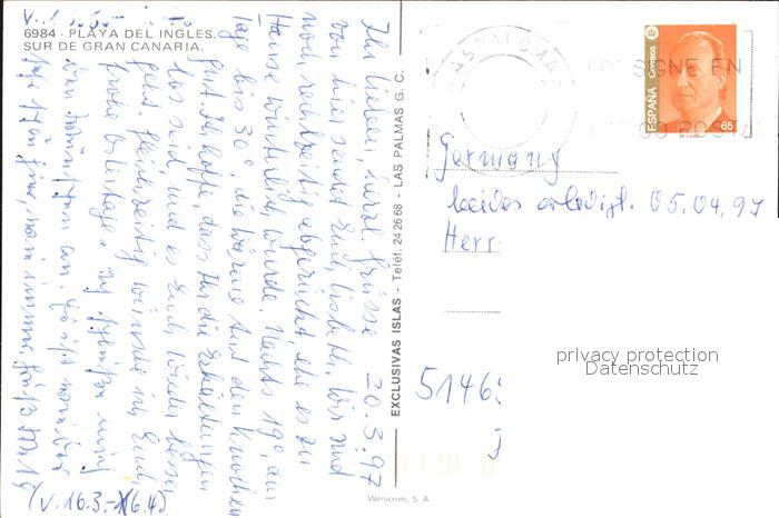 old postcard Gran Canaria Promenade postalisch gelaufen Erhaltung siehe scans