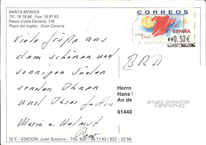 old postcard Gran Canaria Santa Monica postalisch gelaufen Erhaltung siehe scans