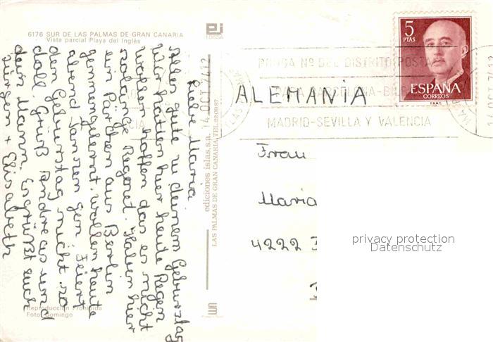 alte Postkarte Gran Canaria Sur de Las Palmas postalisch gelaufen Erhaltung siehe scans [KathaD81]