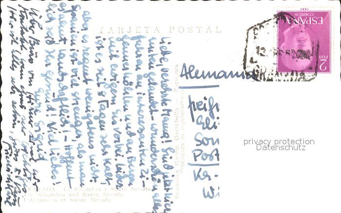old postcard Granada Andalucia Alhambia Sierra Nevada postalisch gelaufen