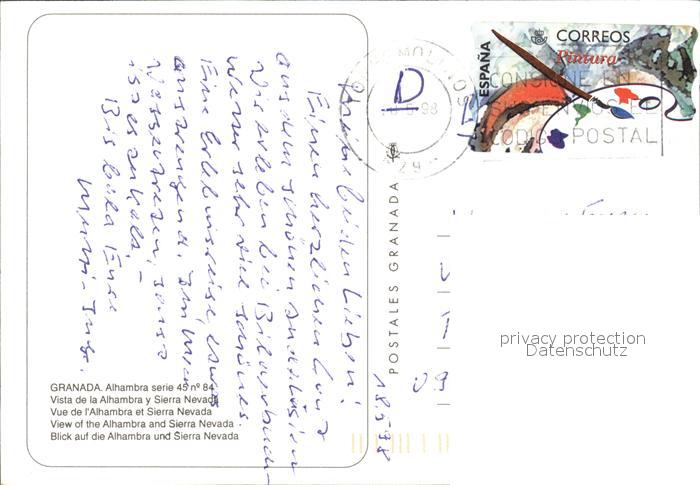old postcard Granada Andalucia Alhambra postalisch gelaufen Erhaltung siehe scans