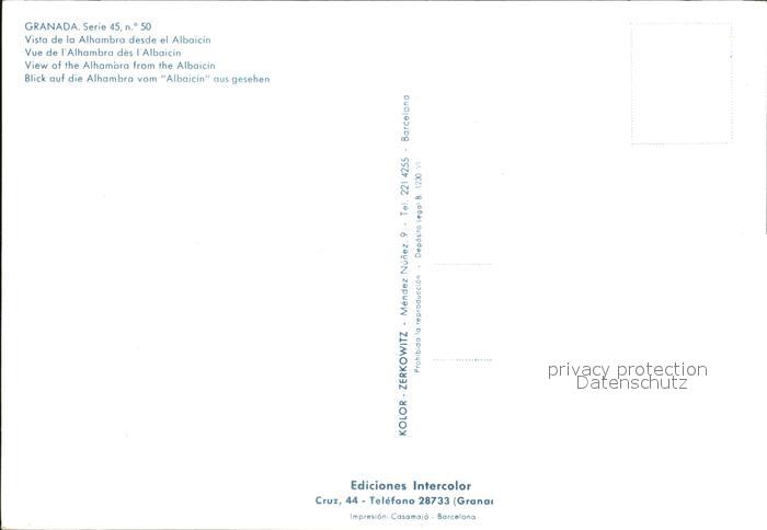 Granada Andalucia Alhambra vista desde el Albaicin postalisch nicht gelaufen Erhaltung siehe scans