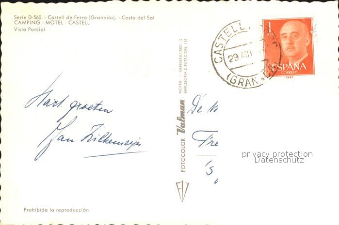 old postcard Granada Andalucia Camping Motel Castell postalisch gelaufen Erhaltung siehe scans