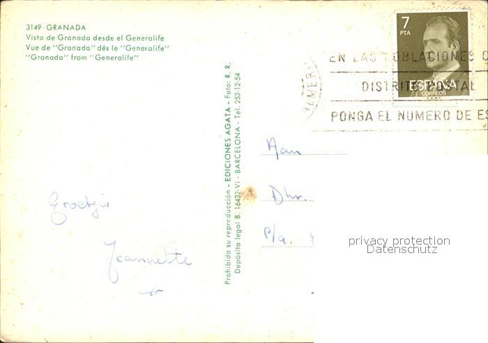 old postcard Granada Andalucia Generalife postalisch gelaufen Erhaltung siehe scans