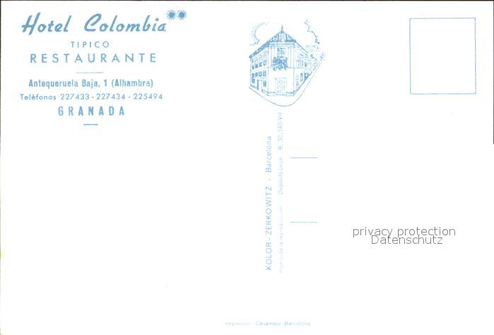 Granada Andalucia Hotel Colombia Restaurant postalisch nicht gelaufen Erhaltung siehe scans