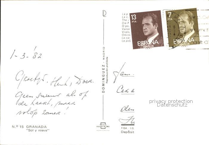 old postcard Granada Andalucia mit Burg im Winter postalisch gelaufen Erhaltung siehe scans