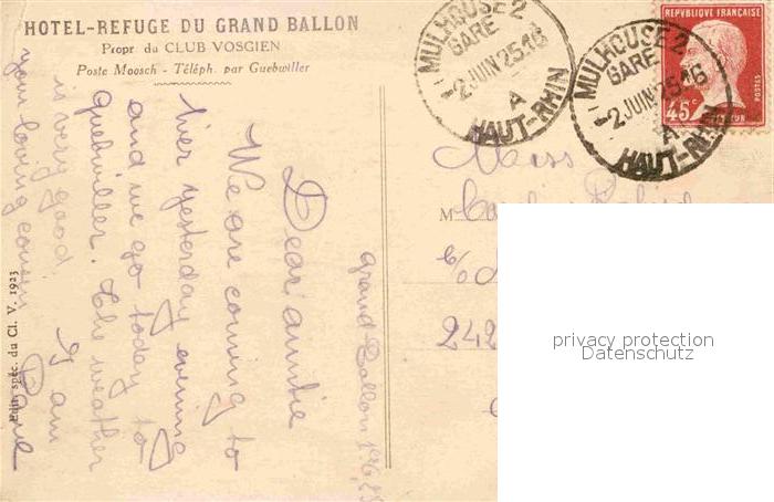 12654708 carte postale Grand Ballon Hotel postalisch gelaufen Erhaltung siehe scans [AndreD76] KatCode: 11170068368112