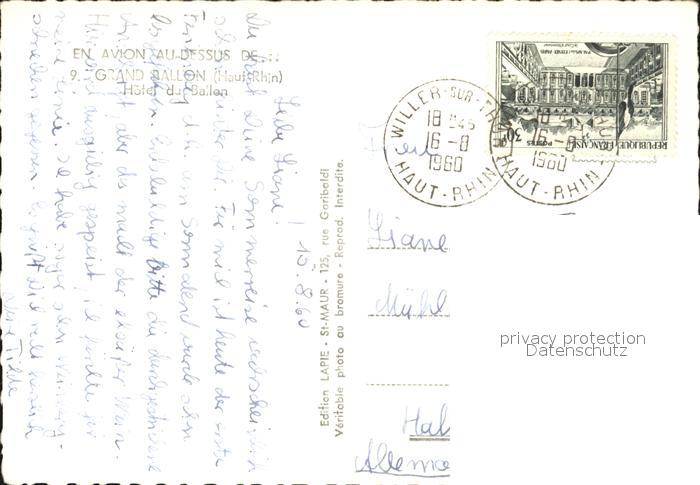 12509082 carte postale Grand Ballon Hotel du Ballon postalisch gelaufen Erhaltung siehe scans KatCode: 11170068368112