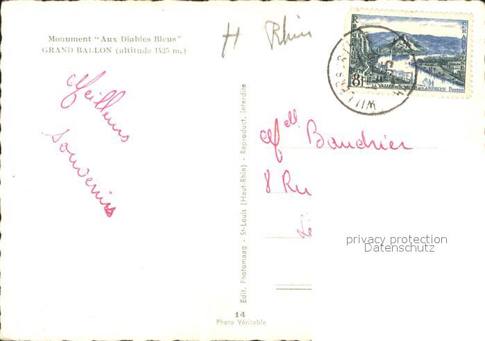 11903455 carte postale Grand Ballon Monument Aux Diables Bleus postalisch gelaufen KatCode: 11170068368112