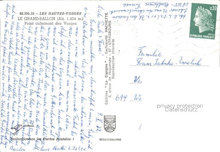 12022164 carte postale Grand Ballon Point culminant des Vosges postalisch gelaufen Erhaltung siehe scans KatCode: 11170068368112