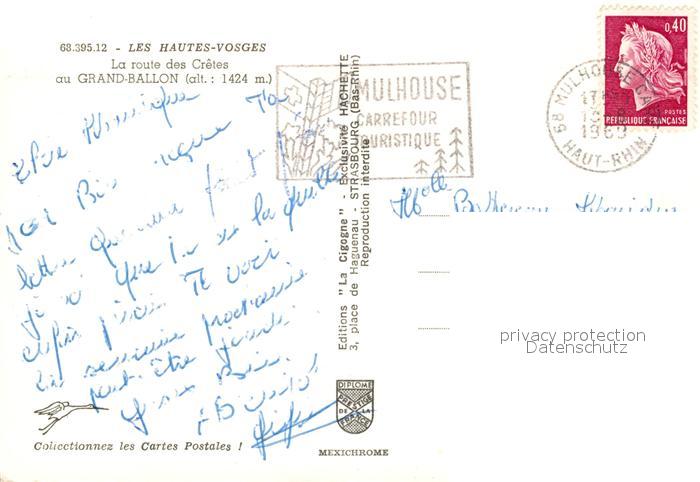 carte postale Grand Ballon Route des Crêtes Hautes Vosges postalisch gelaufen Erhaltung siehe scans [FriedD77]