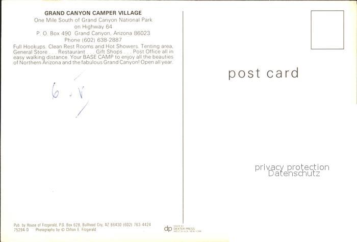 72393187 Grand Canyon Camper Village Details Panorama postalisch nicht gelaufen Erhaltung siehe scans KatCode: 14140030000000