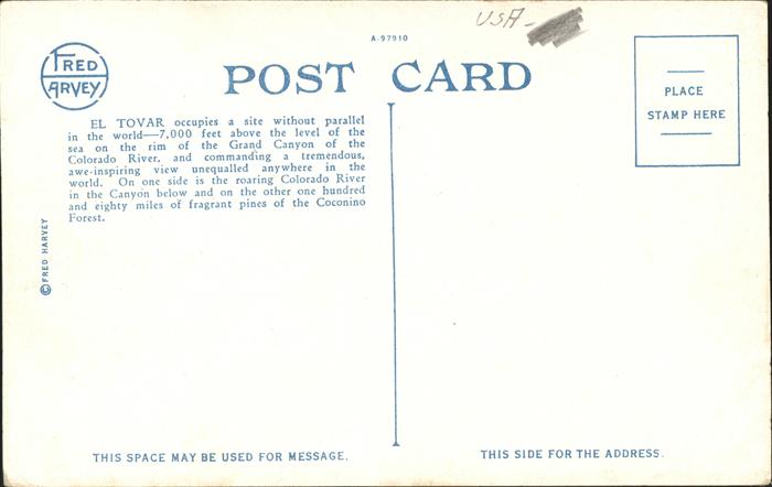11491527 Grand Canyon Hotel El Tovar Painting by Louis Akin postalisch nicht gelaufen Erhaltung siehe scans KatCode: 14140030000000