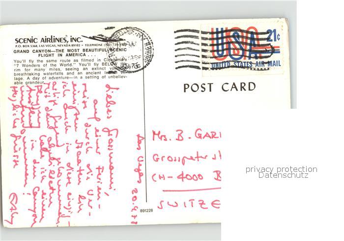 71568111 old postcard Grand Canyon SCENIC AIRLINES postalisch gelaufen Erhaltung siehe scans KatCode: 14140030000000