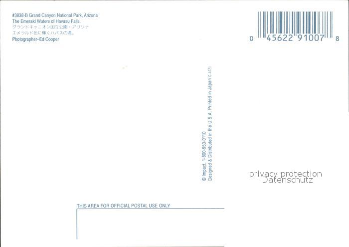 72405347 Grand Canyon The Emeral waters of Havasu Falls postalisch nicht gelaufen Erhaltung siehe scans KatCode: 14140030000000