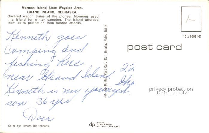 72285133 Grand Island Nebraska State Wayside Area postalisch nicht gelaufen Erhaltung siehe scans KatCode: 14140290000000