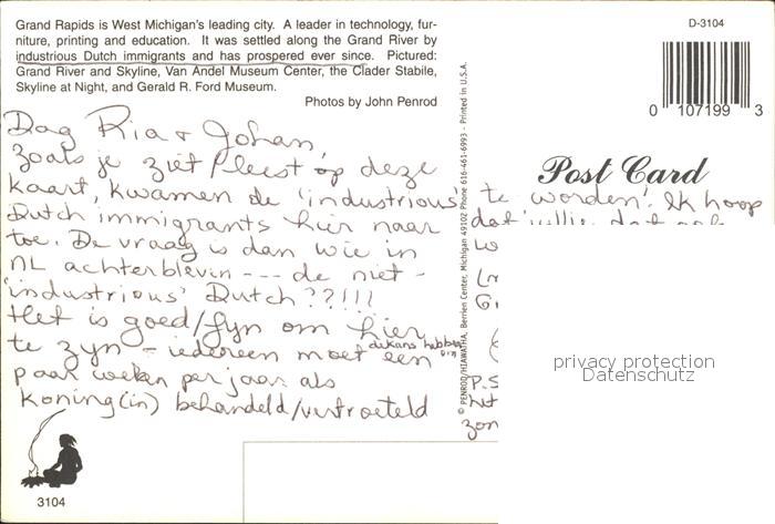 71965796 Grand Rapids Michigan Grand River ans Skyline Van Andel Museum Center Clader Stable Skyline at Night and Gerald R Ford Museum postalisch nicht gelaufen Erhaltung siehe scans KatCode: 14140240000000