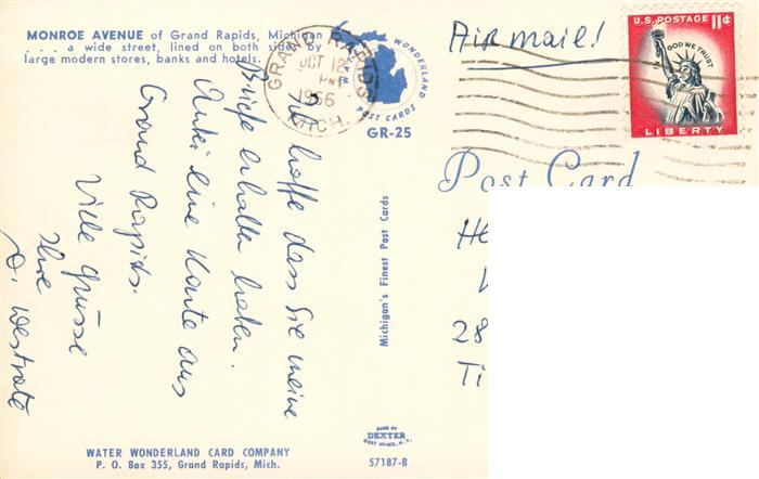 old postcard Grand Rapids Michigan USA Monroe Avenue postalisch gelaufen Erhaltung siehe scans [WerneD78]