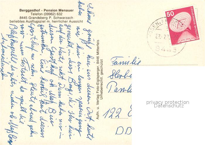 73732136 alte Postkarte Grandsberg Niederbayern Berggasthof-Pension Menauer postalisch gelaufen Erhaltung siehe scans [LiesaD40] KatCode: 11110009278187
