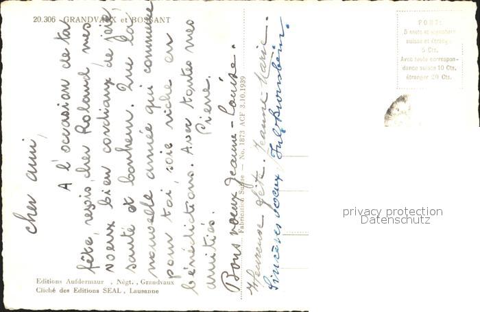 12324205 Grandvaux Lavaux Bossant Weinberge Genfersee postalisch nicht gelaufen Erhaltung siehe scans KatCode: 11470240800140