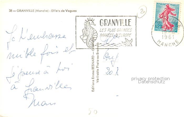 13506679 carte postale Granville Manche Effets de Vagues Brandung Kueste postalisch gelaufen Erhaltung siehe scans [FriedD77] KatCode: 11170050150218