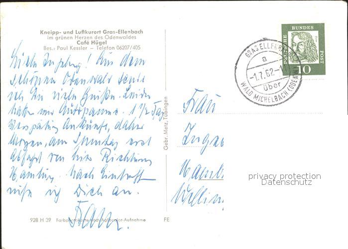 72111793 alte Postkarte Gras-Ellenbach Cafe Huegel postalisch gelaufen Erhaltung siehe scans KatCode: 11110006431009