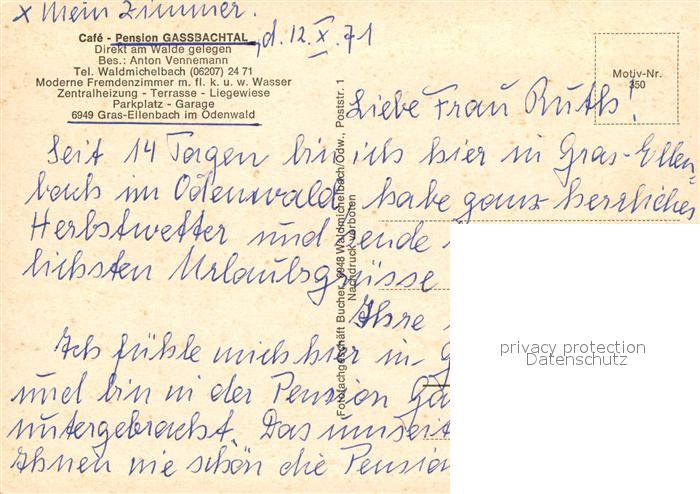 73607830 Gras-Ellenbach Cafe Pension Gassbachtal postalisch nicht gelaufen Erhaltung siehe scans [WerneD78] KatCode: 11110006431009